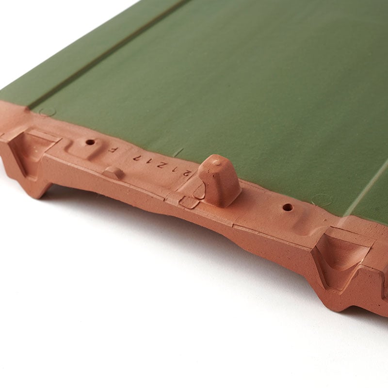 すっきりとした仕上がりの平板瓦に、瓦らしさを加えた特徴あるデザイン。